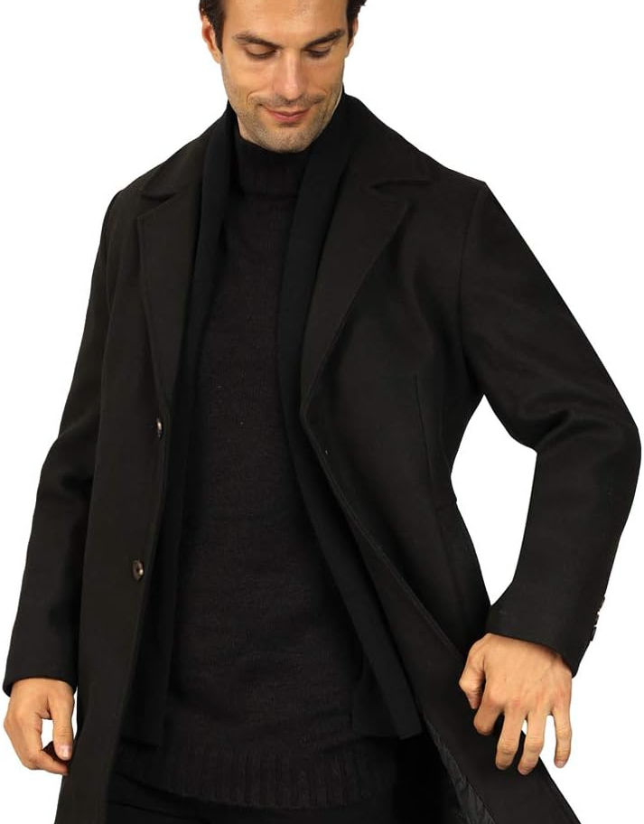 WULFUL Gabardina de lana para hombre, abrigo de invierno ajustado