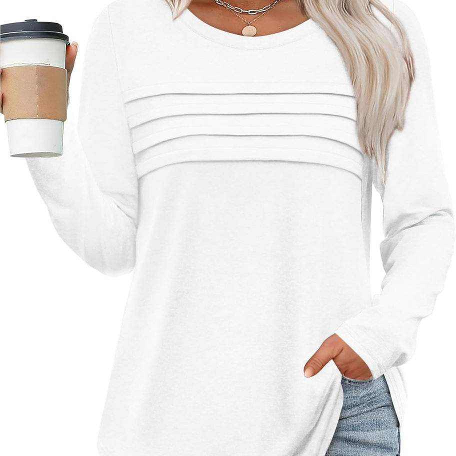 XIEERDUO Blouses for Women Dressy Casual Pleated Front T Shirts