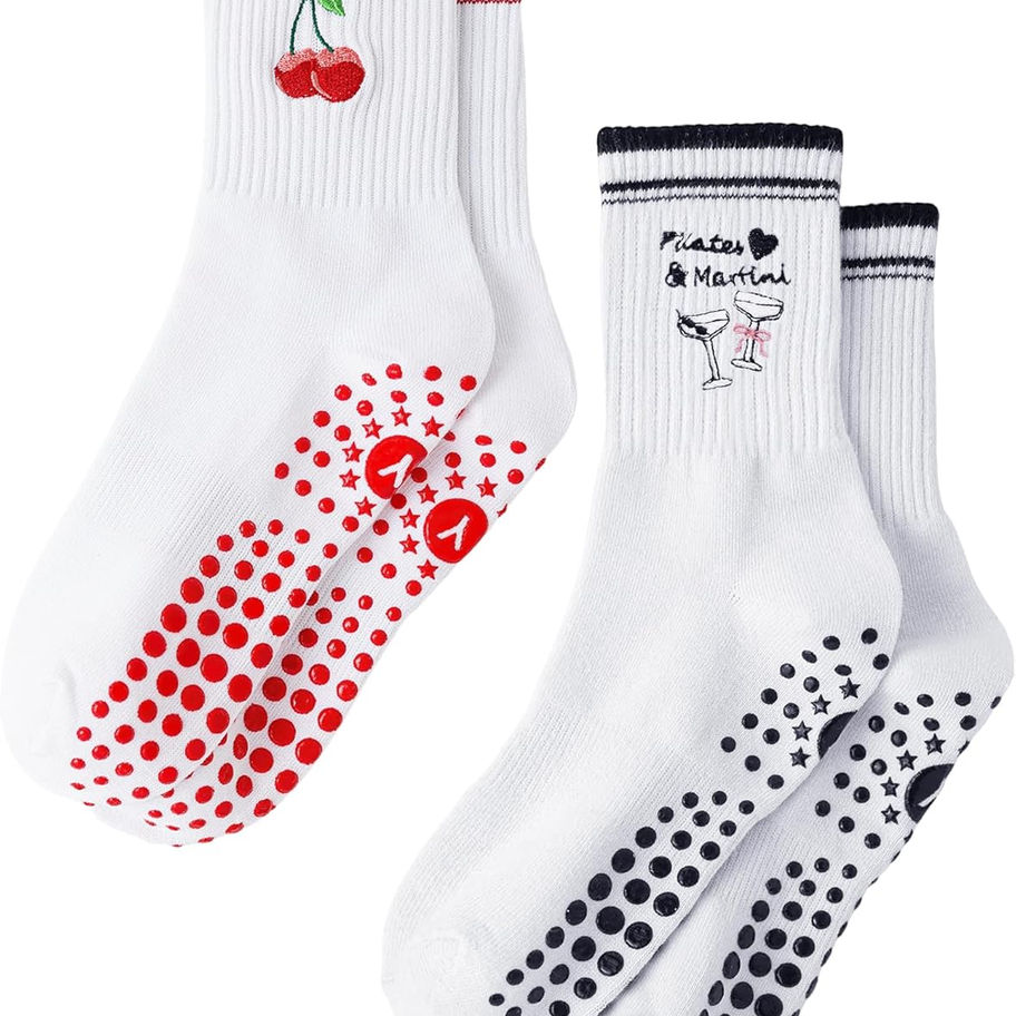 Yawlsow - Calcetines de pilates con agarre para mujer, lindos calcetines de yog