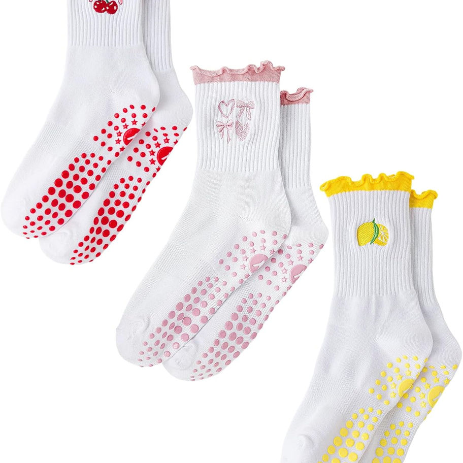 Yawlsow Lindos calcetines de agarre de pilates para mujer, con volantes, calcet