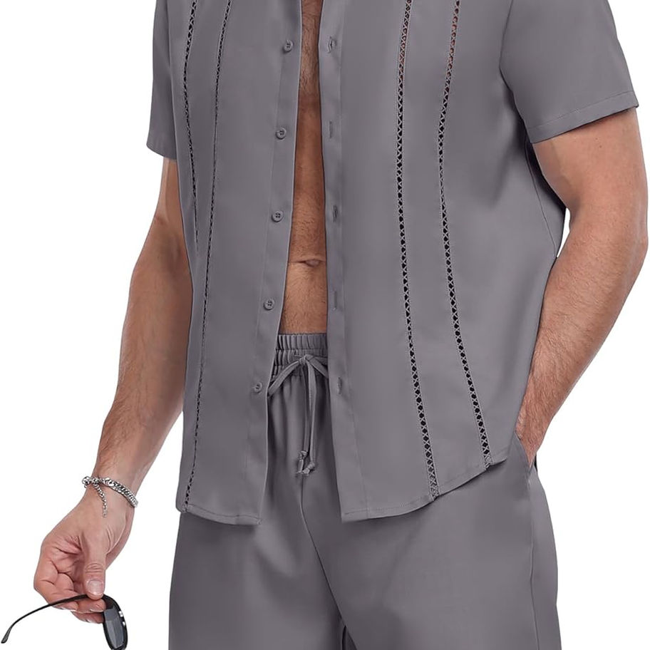 YTD Conjunto casual de 2 piezas para hombre, camisa de manga corta con botones,