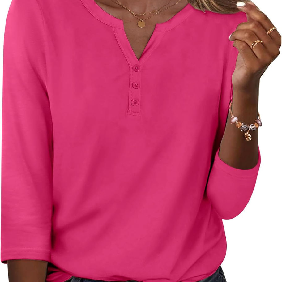 Diseño de manga 3/4: con un escote Henley único y mangas 3/4, esta camiseta combina elegancia moderna con un atractivo atemporal, perfecto para cualquier ocasión