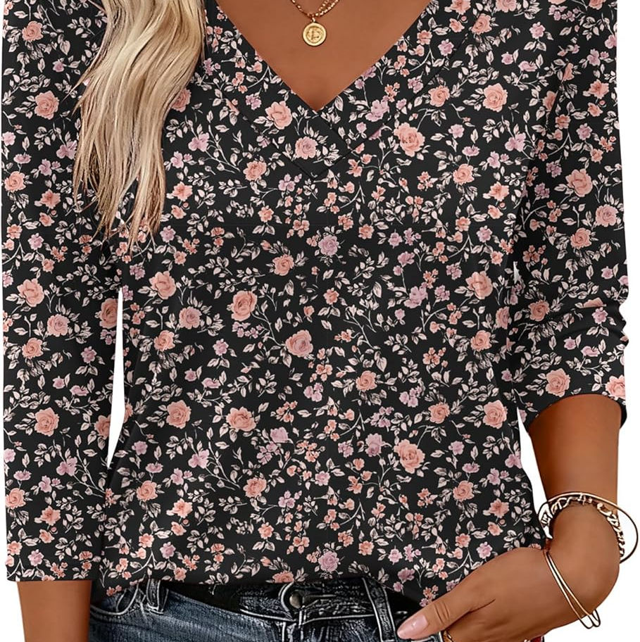Combinación: Esta blusa con cuello en V se puede usar con jeans para un look casual o con pantalones formales y faldas para un look profesional. Las camisas básicas de manga 3/4 se pueden llevar solas o con un blazer, chaqueta o cárdigan, te proporcionan un aspecto moderno y elegante en los trajes de otoño e invierno 2025