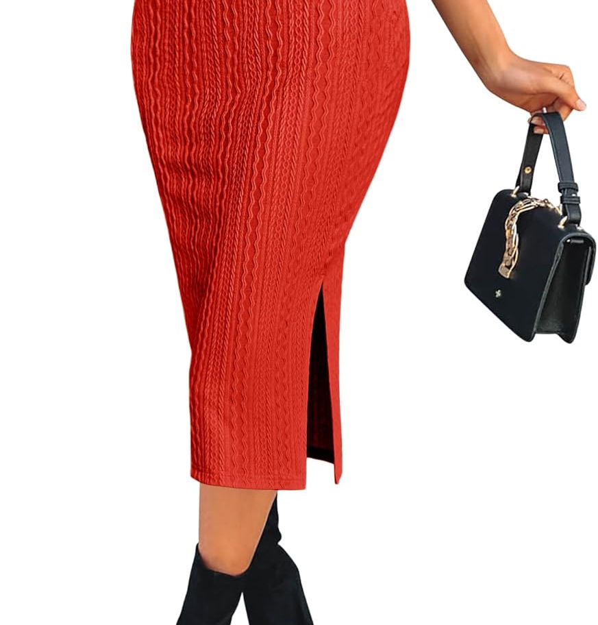 Material: las faldas midi están hechas de tela de punto de alta calidad, suave y brillante, te da una sensación cómoda y hermosa. Haz que esta elegante falda sea perfecta para primavera, verano, otoño e invierno
