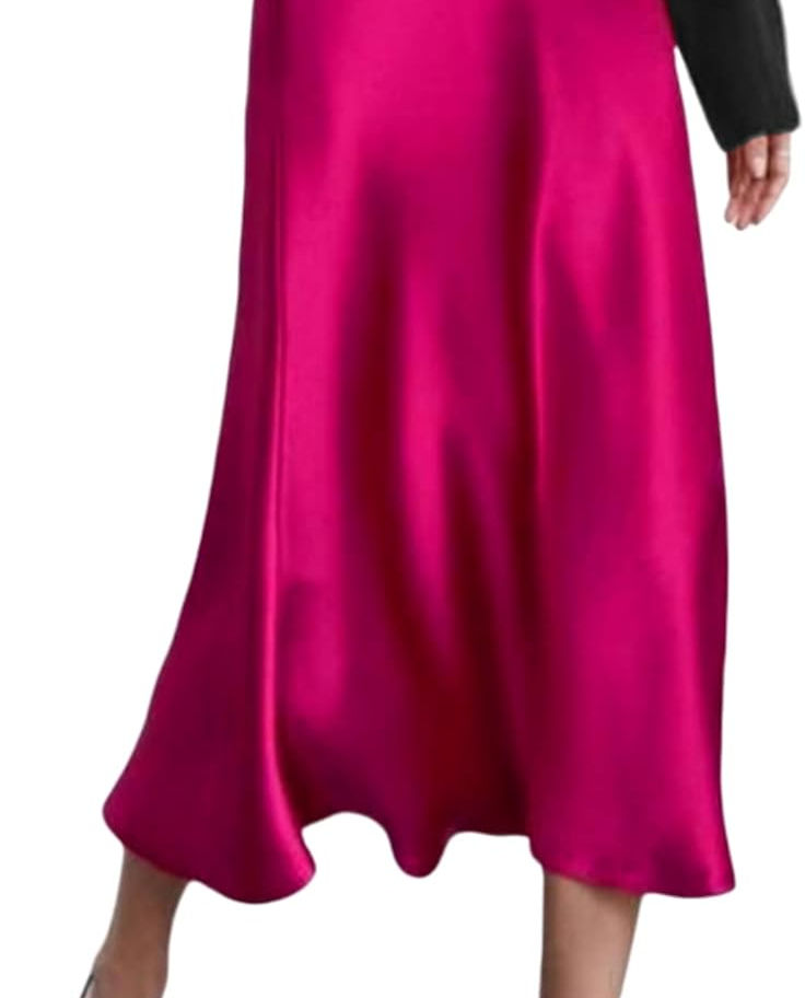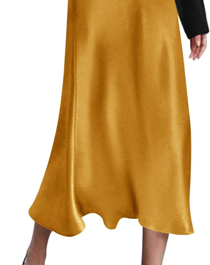 Zeagoo Faldas para mujer, falda de cintura alta, elegante falda midi de satén