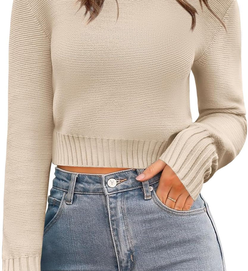 Zeagoo Suéter corto de cuello redondo para mujer, de manga larga, de punto acan