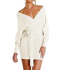 Design: This fall fashion sweater dress features a foldover off-the-shoulder neckline decorated with a metal ring, exuding a refined charm. The bodycon style creates a sleek and graceful silhouette, showcasing your charming body curves while being elegant and stylish. The flared sleeve design creates a playful vibe