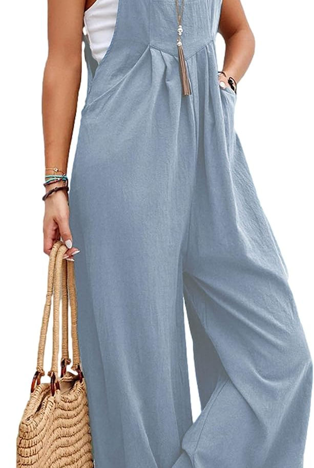 Overol largo casual de verano con correa de botón y bolsillos, overol de moda de ajuste holgado para mujer, overol de pierna ancha, overol con peto holgado que se puede llevar sobre una camiseta o solo para un efecto sexy